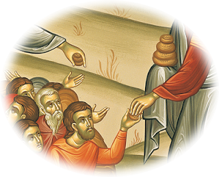 Τη στιγμή όμως που ο φιλάνθρωπος εκείνος διαβάτης άπλωσε το χέρι του, άπλωσε κι ο Χριστός το δικό του μέσ’ από τη μετέωρη εικόνα, πήρε το ψωμί και, αφού ευχαρίστησε, το έδωσε στο φτωχό. Μα ούτε εκείνος ούτε κι ο διαβάτης κατάλαβαν τι έγινε. Ο θαυμασμός μου γι’ αυτό που είδα δεν περιγράφεται. Ε, από τότε πια πίστεψα ακράδαντα, πως όποιος δίνει στους αδελφούς ό,τι έχουν ανάγκη, το βάζει πραγματικά στα χέρια του Χριστού, που τη μορφή Του βλέπω να στέκεται πάνω απ’ όλους τους φτωχούς. Όσο μπορώ λοιπόν ασκώ την αρετή της ελεημοσύνης. Και ο Χριστός μου μ’ ευχαριστεί για κάθε φτωχό που βοηθάω.